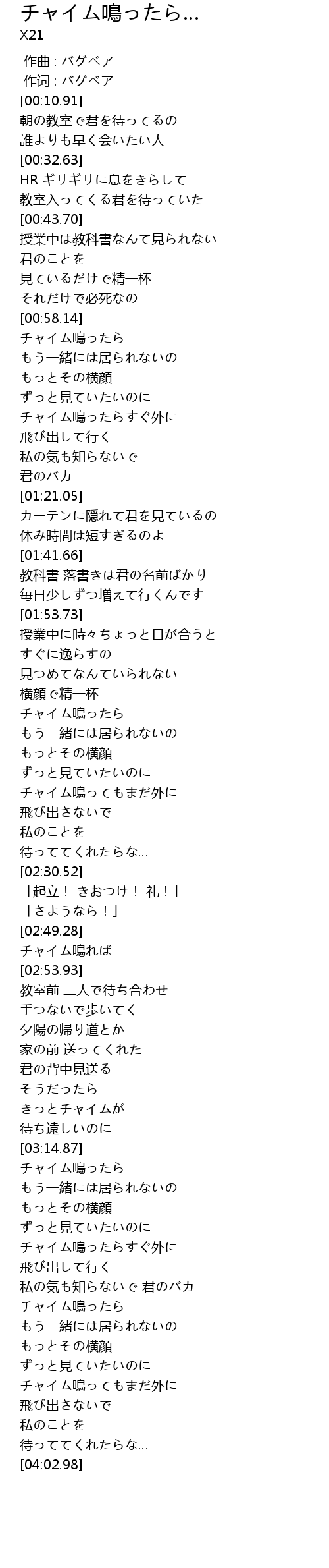 | [02:19.07] | チャイム鳴ってもまだ外に |