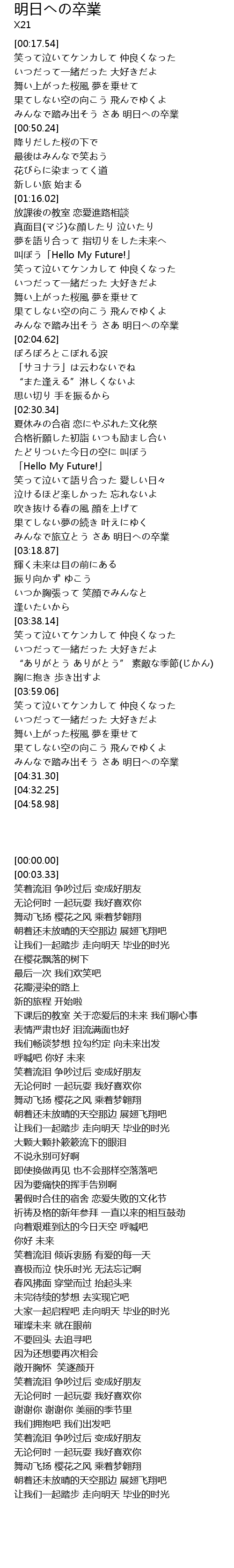 | [04:22.01] | みんなで踏み出そう さあ 明日への卒業 |