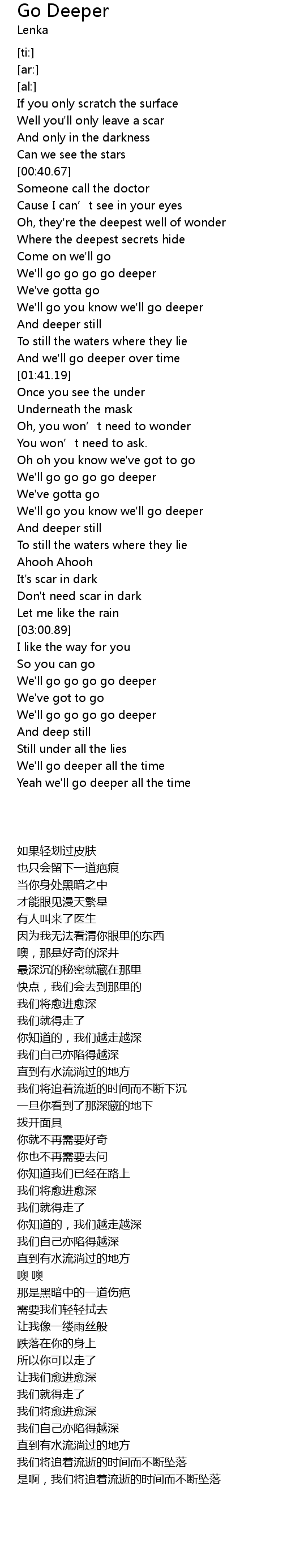 | [03:16.78] | We'll go go go go deeper |