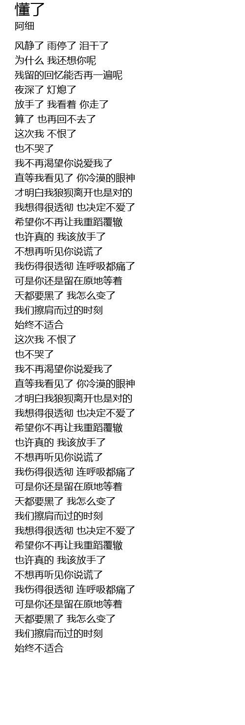 | [00:14.40] | 风静了 雨停了 泪干了 |