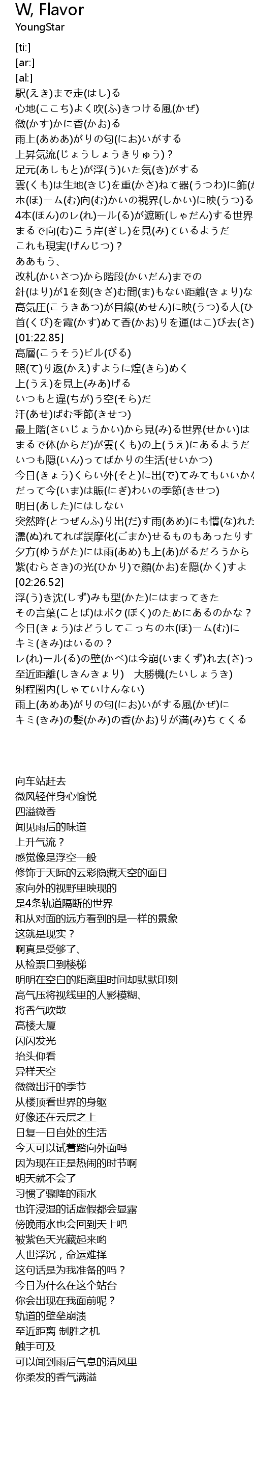 | [03:06.44] | 雨上(あめあ)がりの匂(にお)いがする風(かぜ)に |