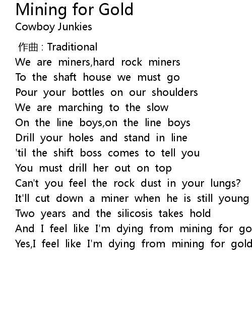 | [01:22.413] | Yes, I feel like I' m dying from mining for gold |