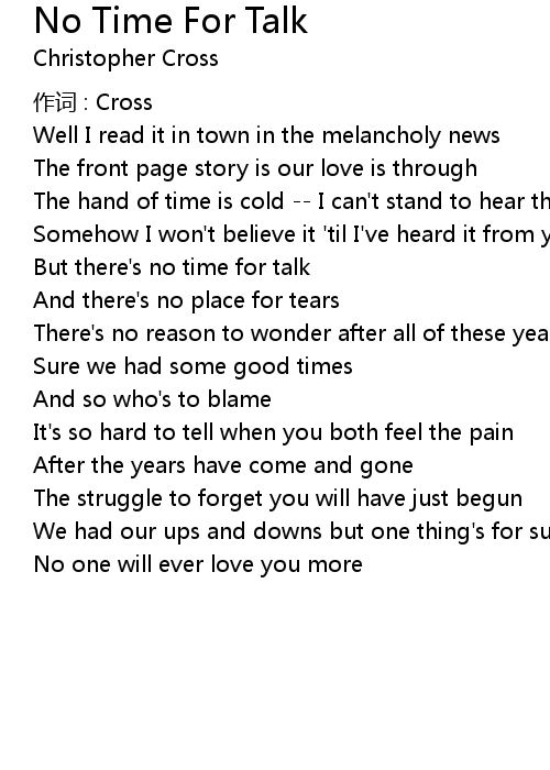 | But there' s no time for talk | |