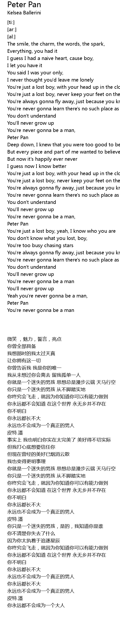 You're just a lost boy, never keep your feet on the ground |