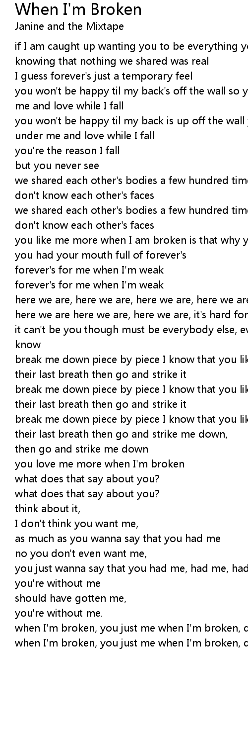 break me down piece by piece I know that you like it wait till my lungs are on their last breath then go and strike it |
