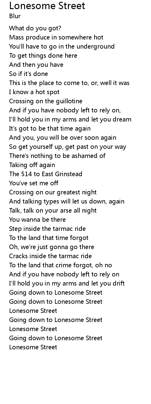 Going down to Lonesome Street |