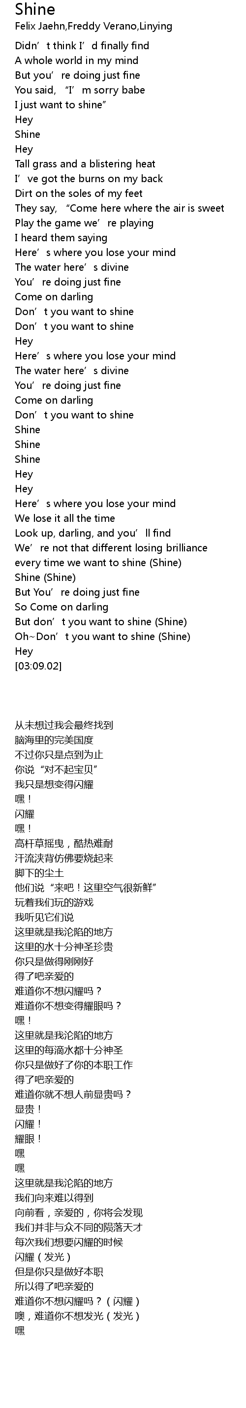 | [02:58.54] | Oh Don' t you want to shine Shine |