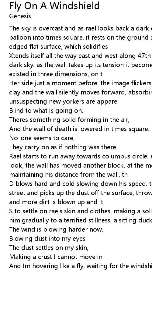 And Im hovering like a fly, waiting for the windshield on the freeway. |