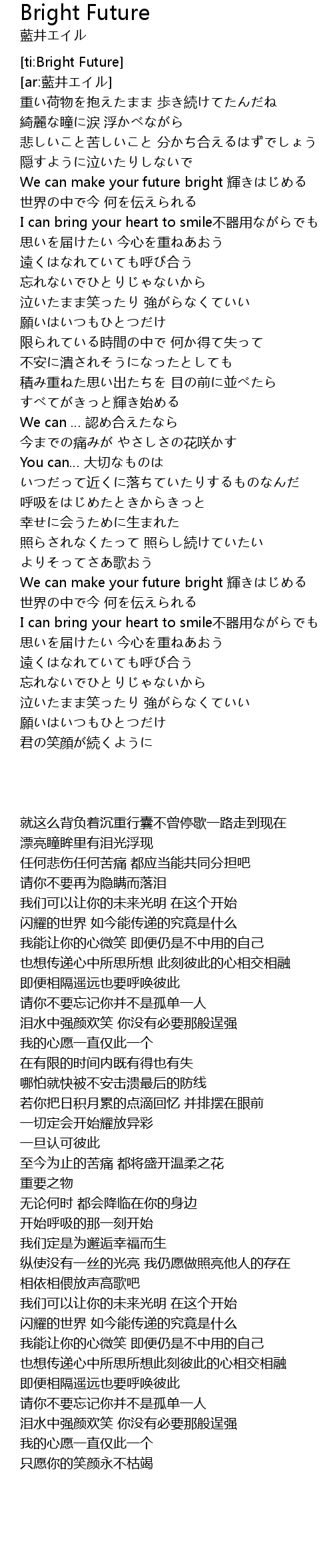 | [03:51.900] | We can make your future bright 輝きはじめる |