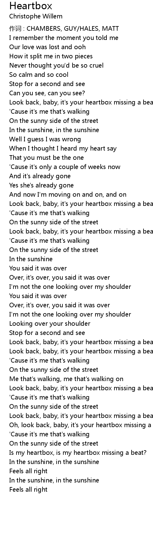 | Oh, look back, baby, it' s your heartbox missing a beat | |