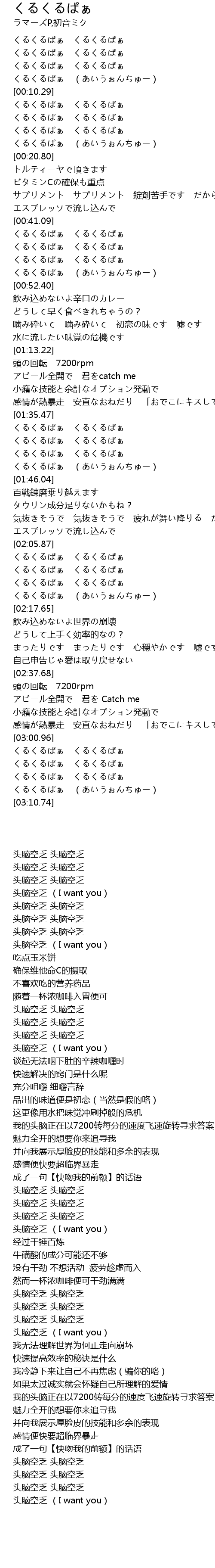 | [00:10.52] | くるくるぱぁ くるくるぱぁ |