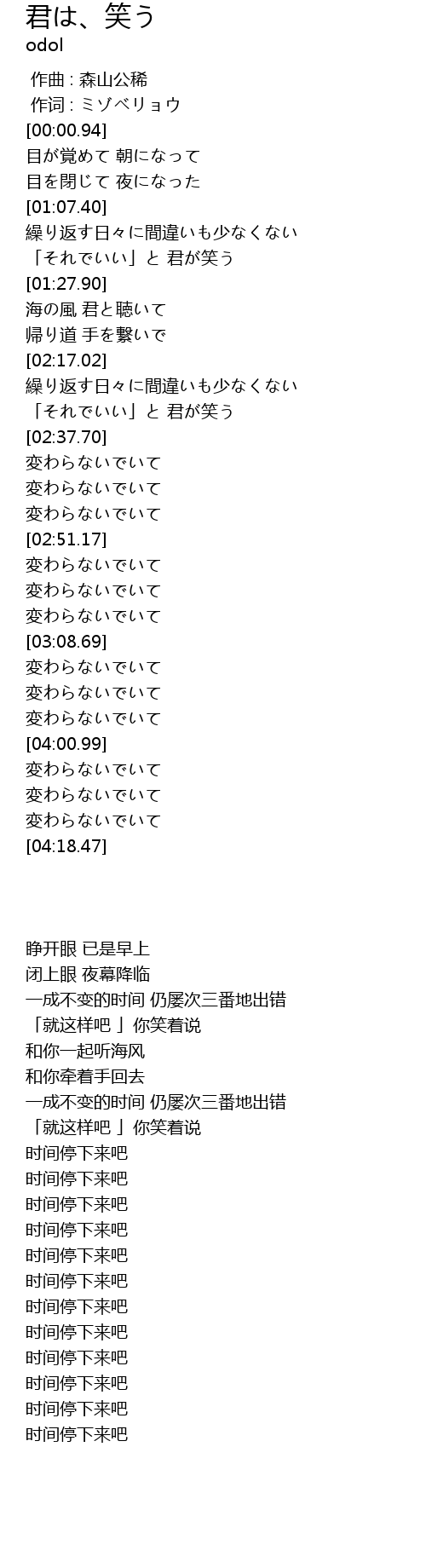 | [03:53.34] | 変わらないでいて |