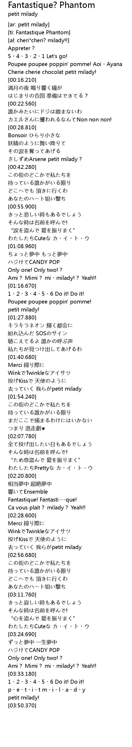 | [03:37.910] | p・e・t・i・t m・i・l・a・d・y |