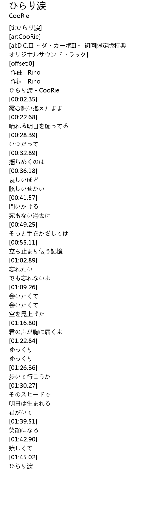 | [00:00.36] | ひらり涙 - CooRie |