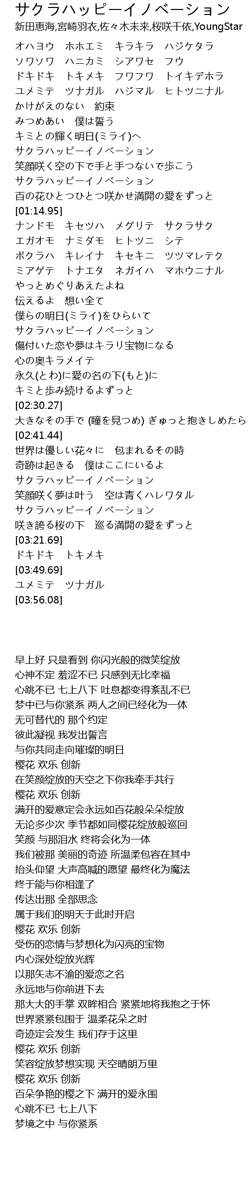 | [03:13.58] | 咲き誇る桜の下 巡る満開の愛をずっと |