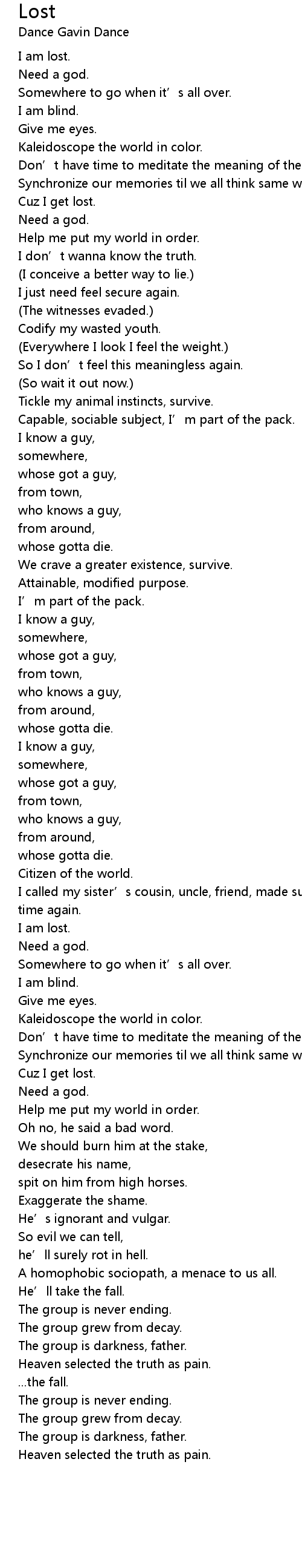 | (Everywhere I look I feel the weight.) | |