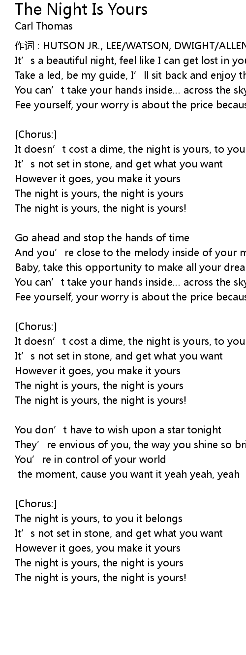 | It doesn' t cost a dime, the night is yours, to you it belongs | |