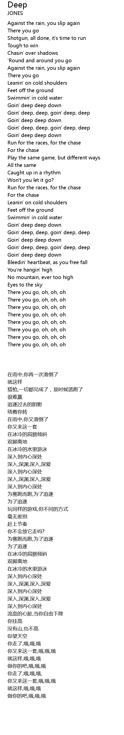 | [01:22.60] | Goin' deep, deep, goin' deep, deep |