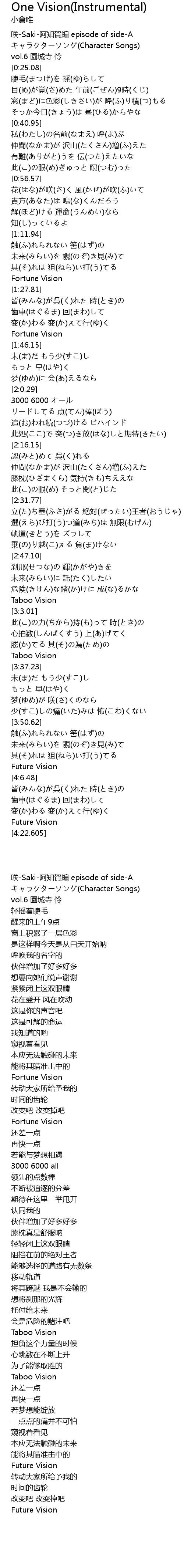 | [3:53.845] | 未来(みらい)を 覗(のぞ)き見(み)て |