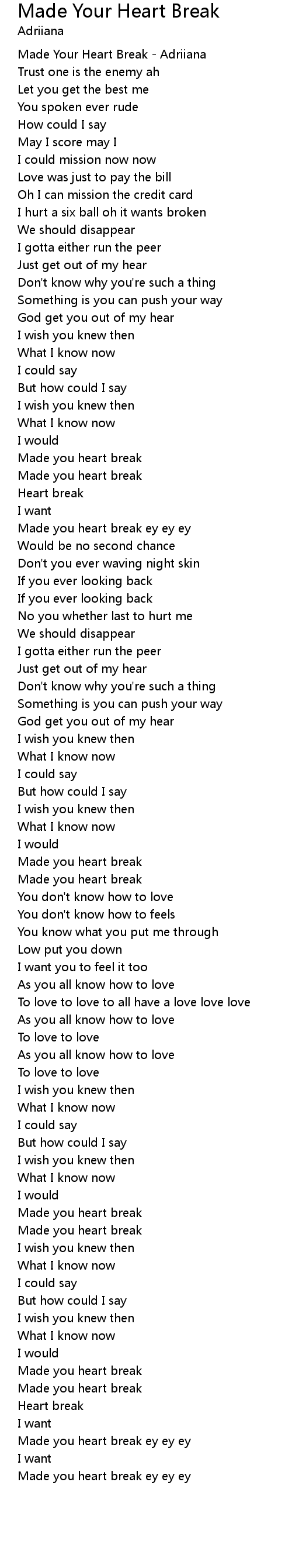 | [00:00.100] | Made Your Heart Break - Adriiana |
