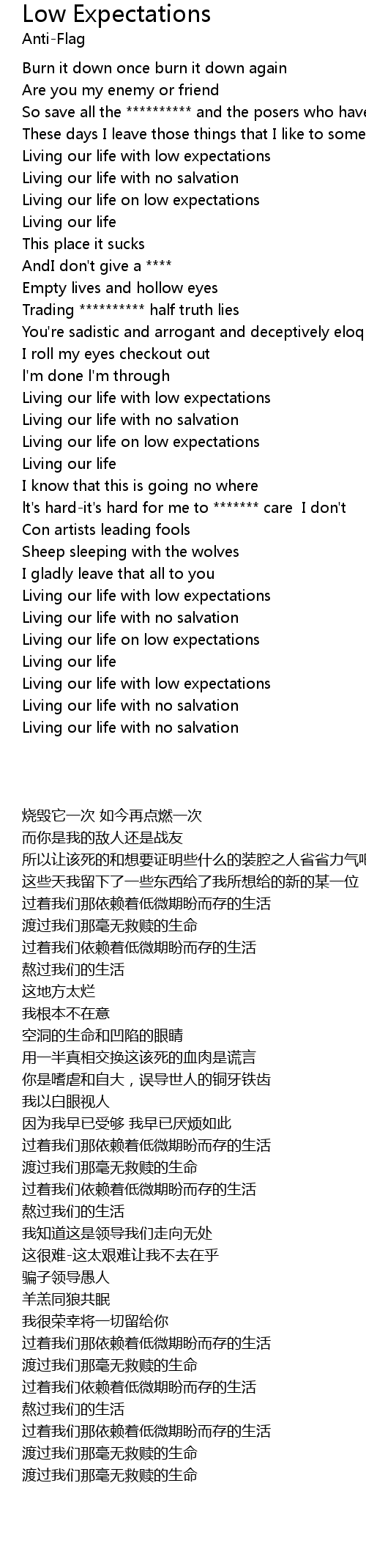 Living our life on low expectations |