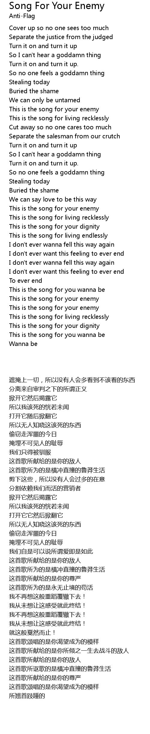 This is the song for your enemy |