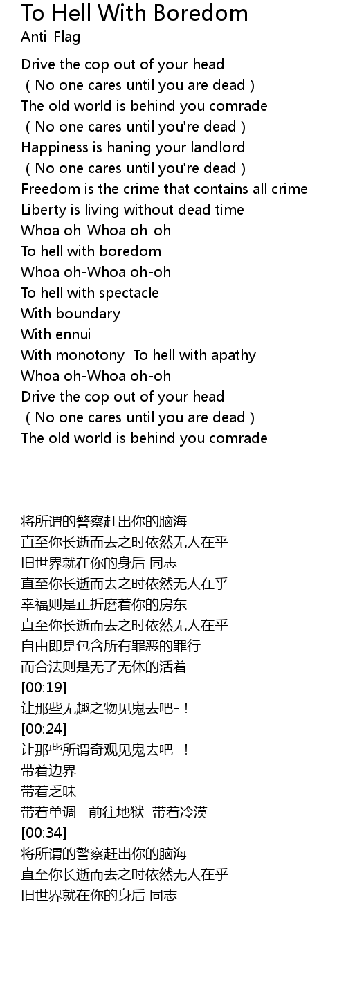 | [00:31] | With monotony To hell with apathy |