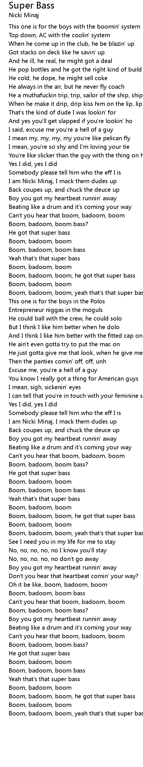 Boom, badoom, boom, yeah that's that super bass |
