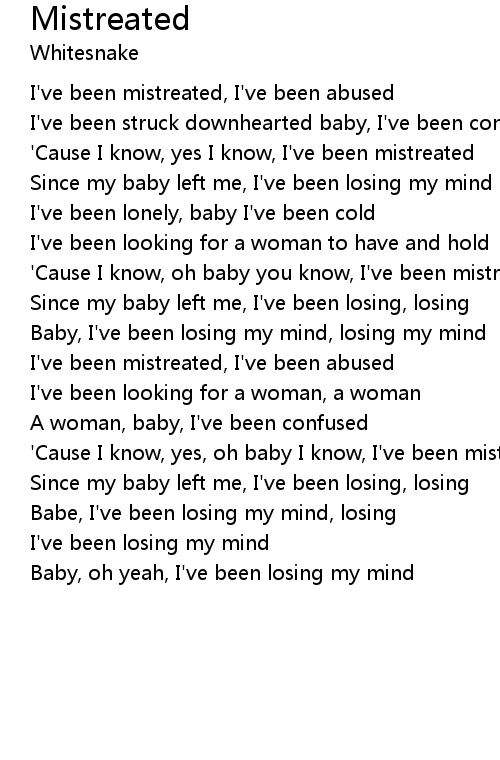 'Cause I know, oh baby you know, I've been mistreated |