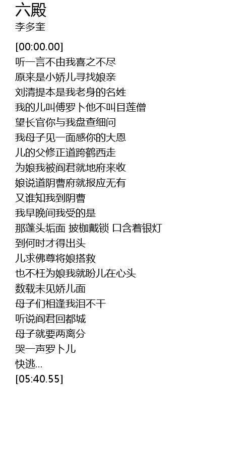 | [05:04.48] | 听说阎君回都城 |
