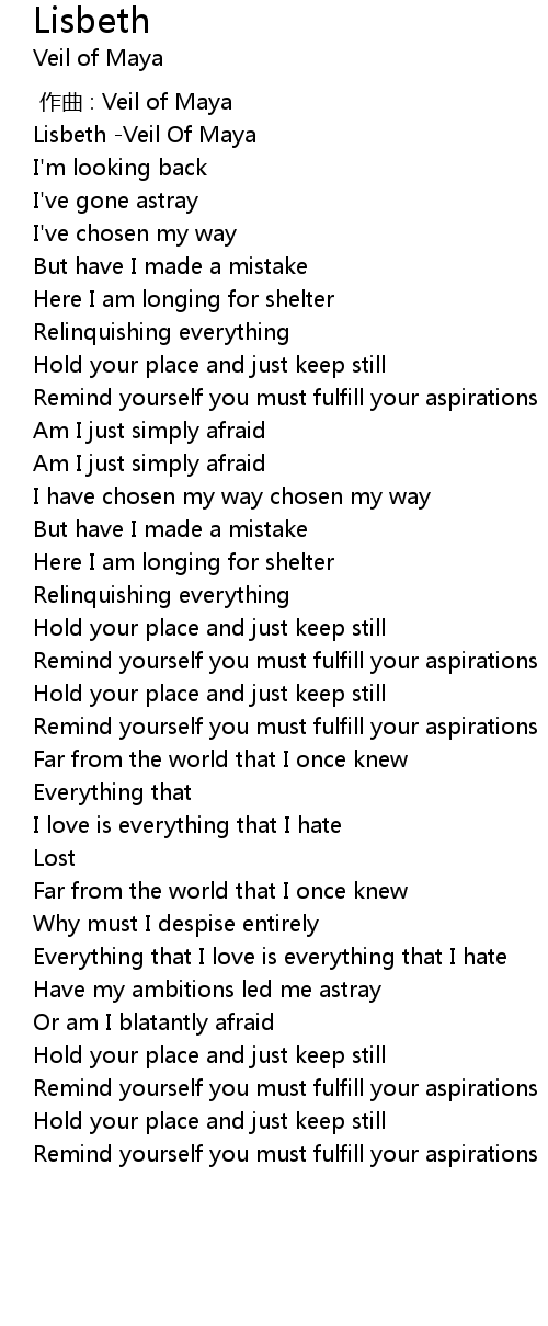 | [00:00.00] | Lisbeth -Veil Of Maya |