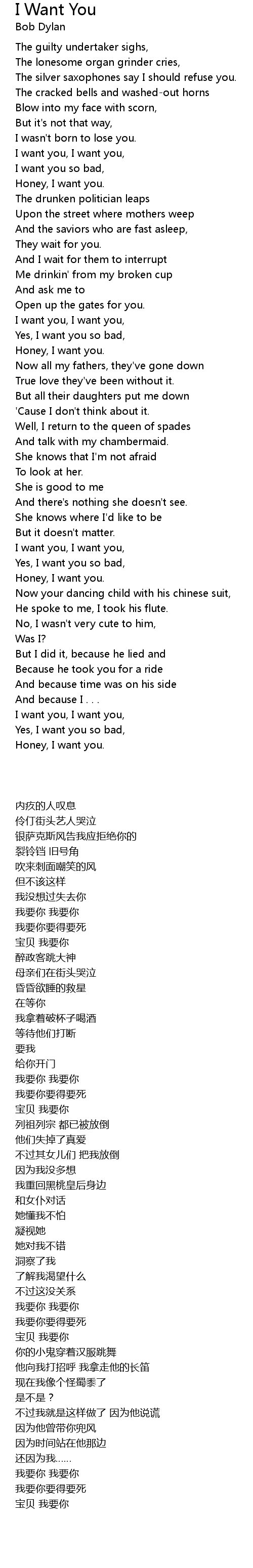 I want you, I want you, |