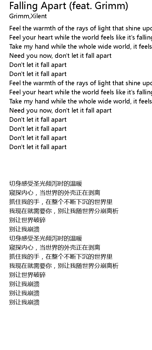 | [00:41.887] | Feel your heart while the world feels like it's falling apart |