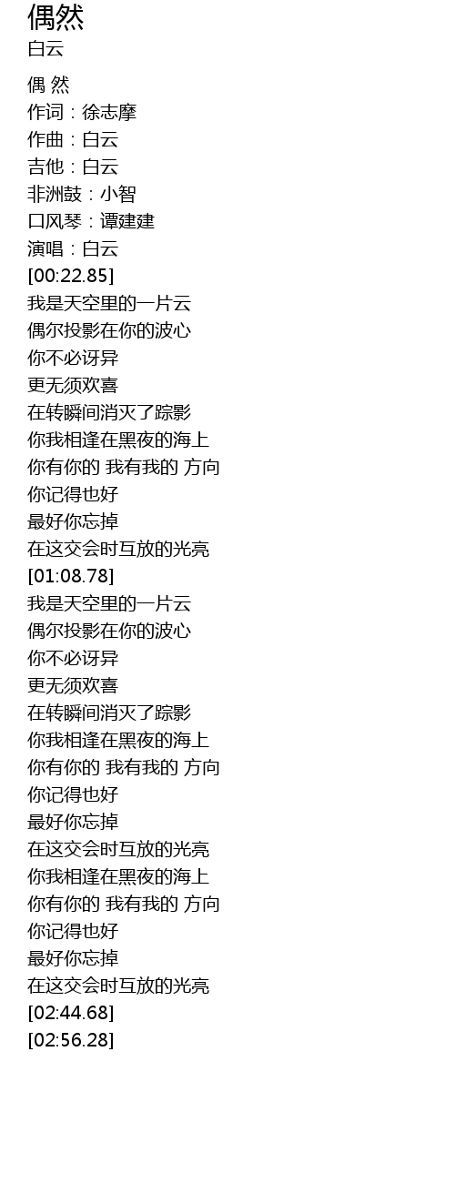 | [00:01.63] | 偶 然 |