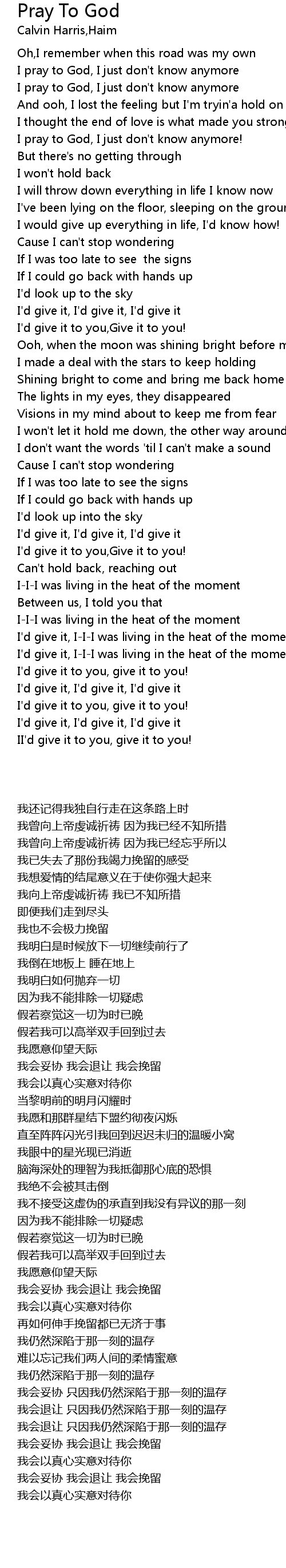 Pray To God Lyrics