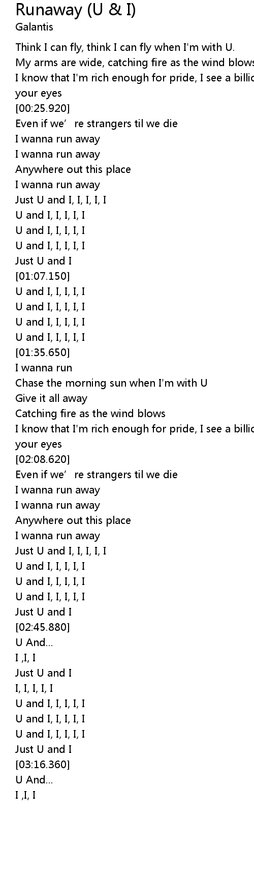 | [00:18.280] | I know that I'm rich enough for pride, I see a billion dollars in your eyes |