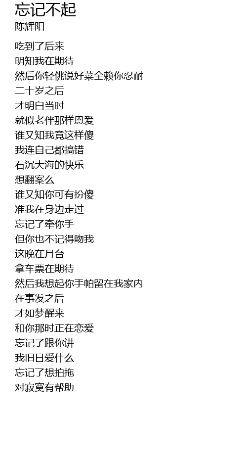 | Song | 忘记不起 |