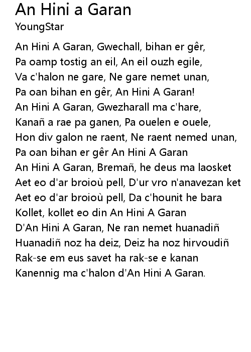 | An Hini A Garan, Gwezharall ma c'hare, | |