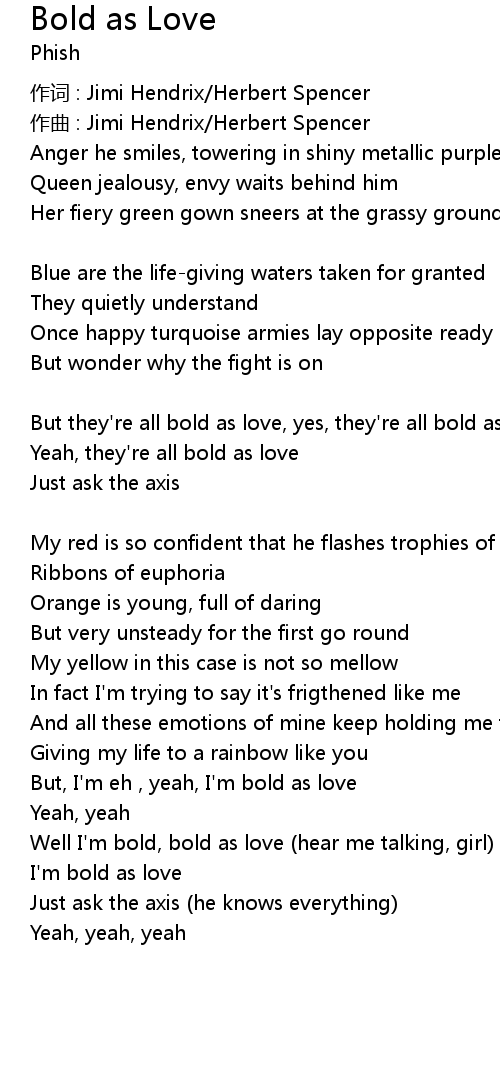 | But they're all bold as love, yes, they're all bold as love | |