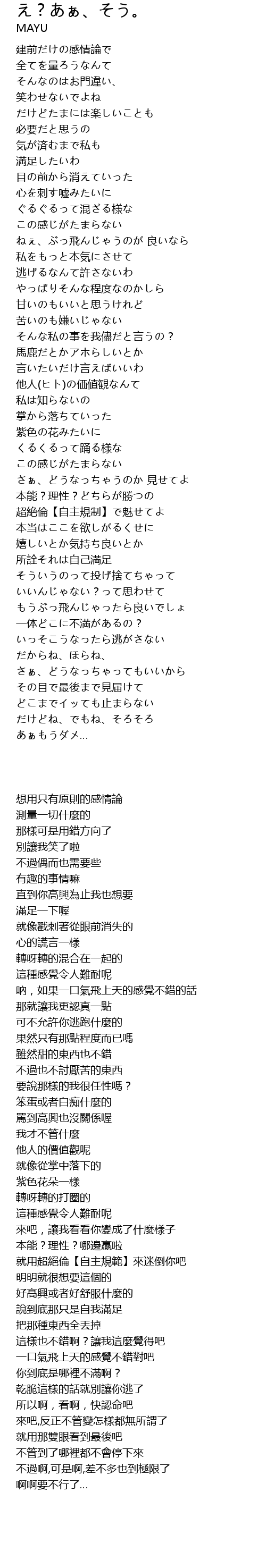 | [01:45.17] | chāo jué lún zì zhǔ guī zhì mèi |