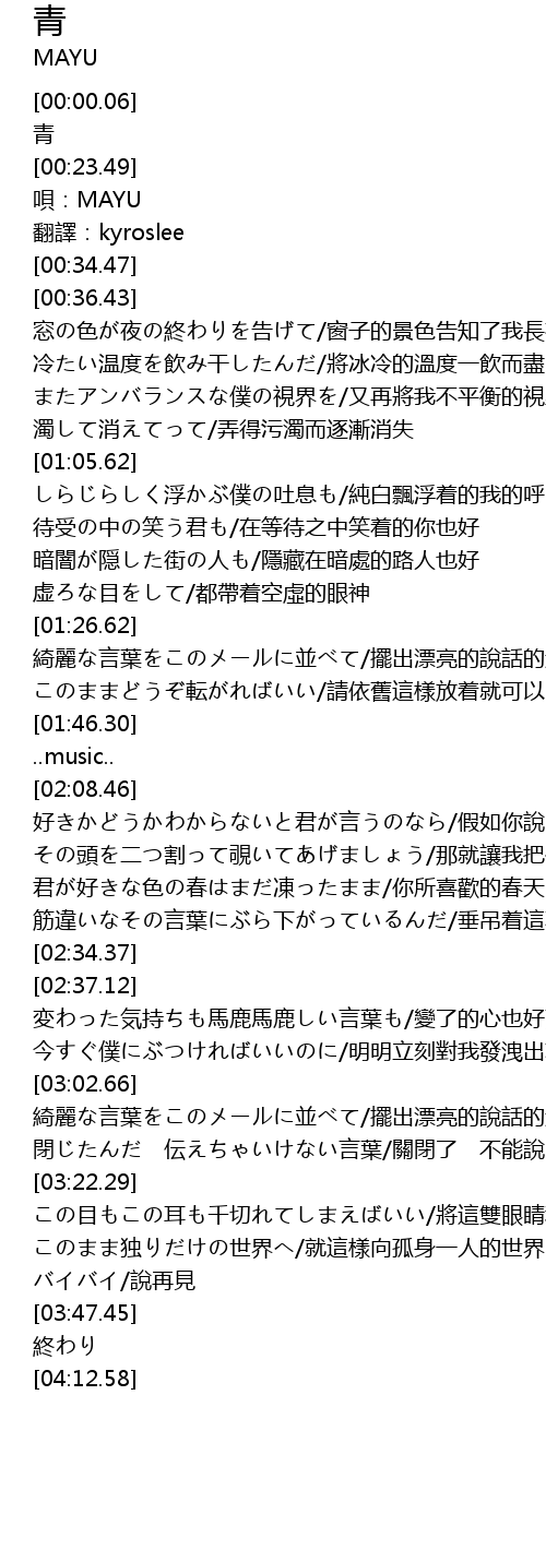 | [01:00.64] | 濁して消えてって/弄得污濁而逐漸消失 |