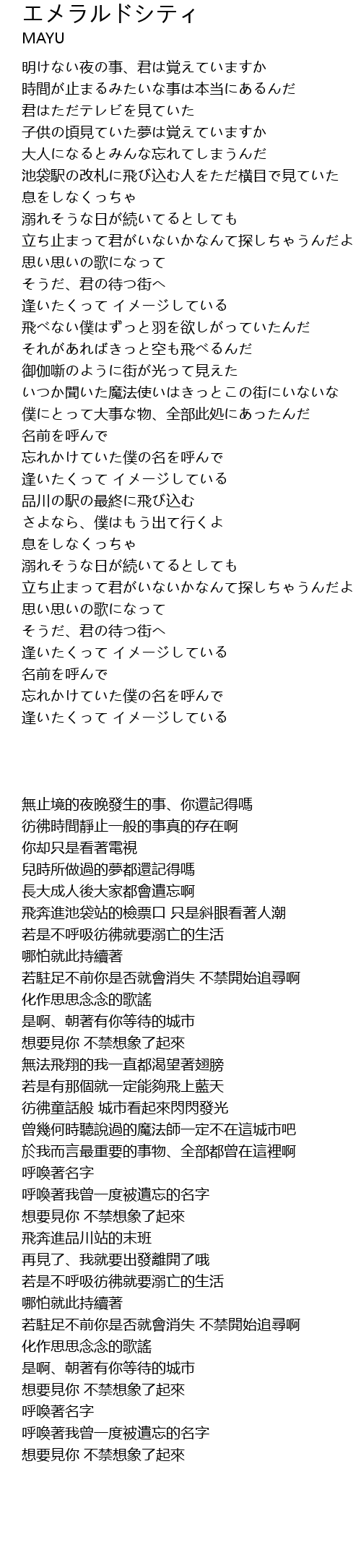 | [00:14.65] | 明けない夜の事、君は覚えていますか |