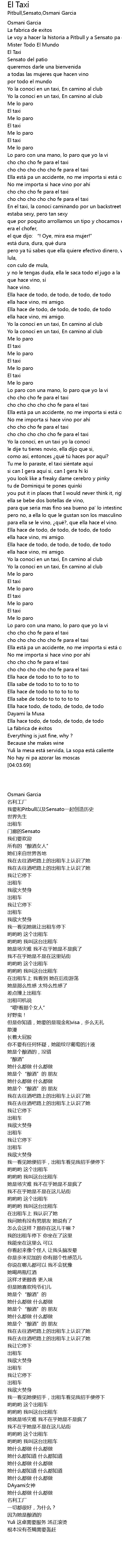 | [03:19.25] | cho cho cho cho cho fe para el taxi |