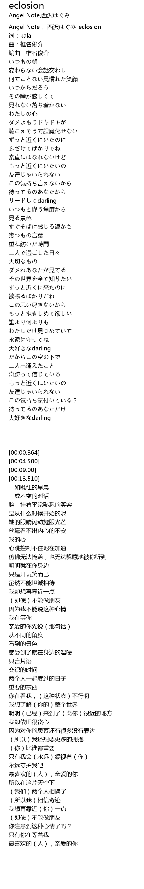 | [00:00.364] | Angel Note 、西沢はぐみ-eclosion |
