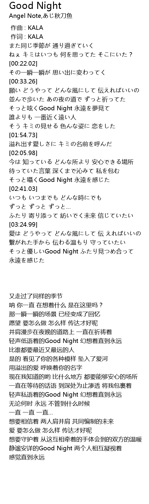 | [03:50.46] | yōu Good Night jiàn hé |