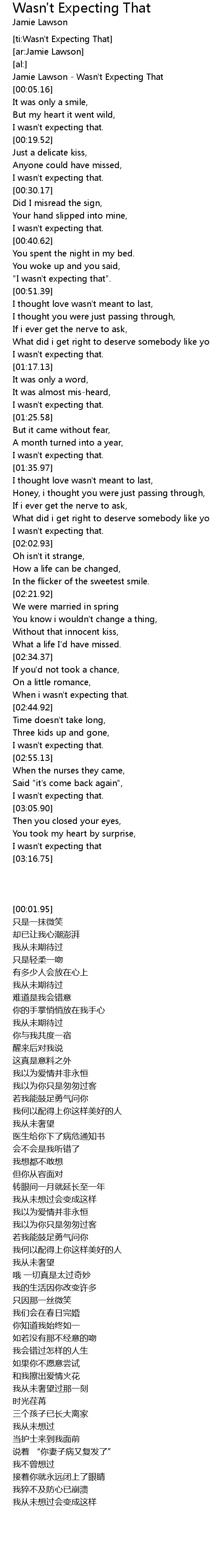 [00:01.95] Jamie Lawson - Wasn't Expecting That