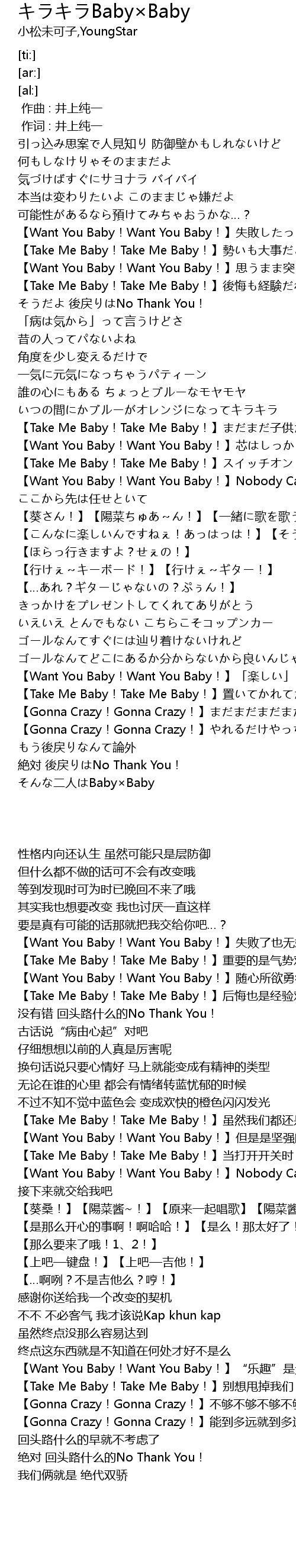 | [02:55.97] | Take Me Baby! Take Me Baby! zhi |