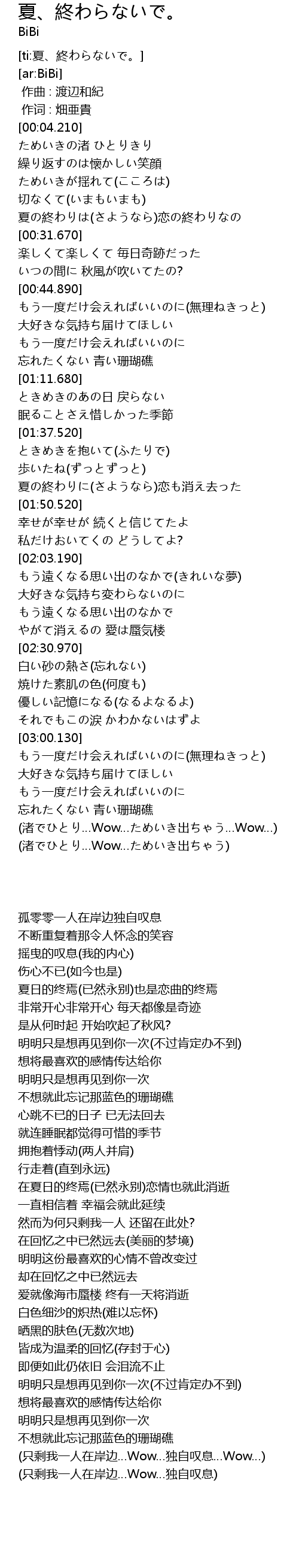 | [01:45.310] | 夏の終わりに(さようなら)恋も消え去った |