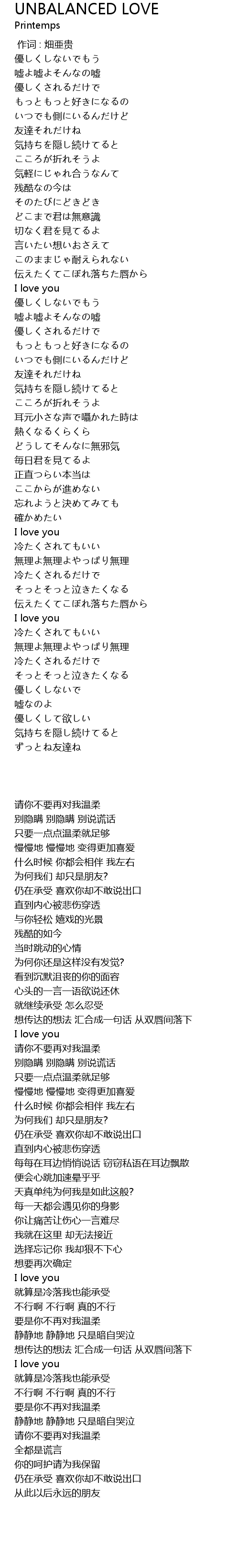 | Song | UNBALANCED LOVE |