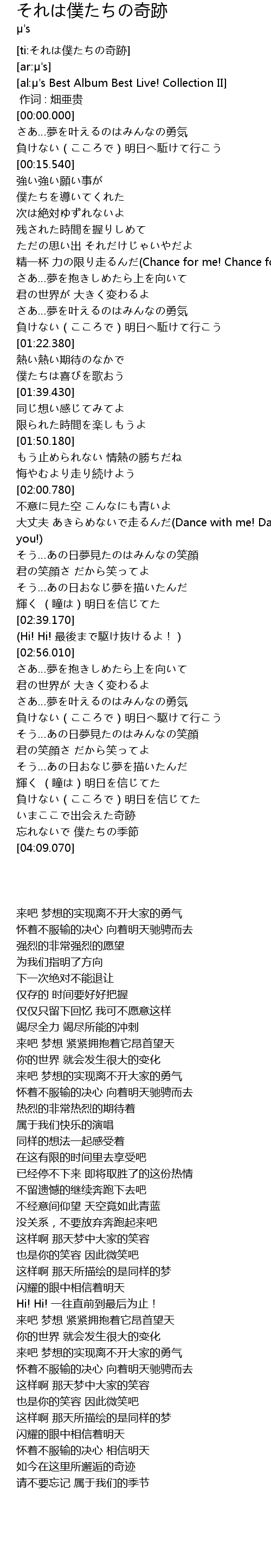 | [02:07.100] | 大丈夫 あきらめないで走るんだ(Dance with me! Dance with you!) |